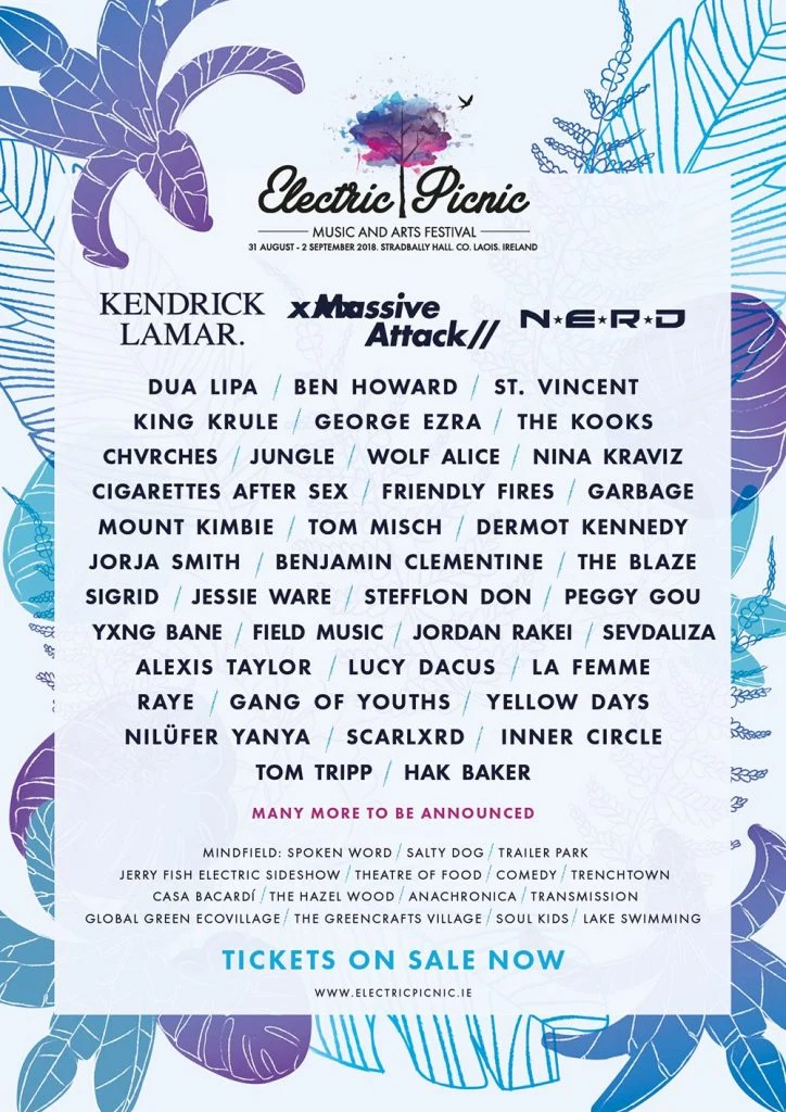 Electric Picnic organisers have just confirmed the line-up for this year’s highly anticipated festival. The annual music event, which takes place in Stradbally, County Laois, will be headlined by multi-Grammy Award winner Kendrick Lamar, American hip-hop band N.E.R.D., and trip-hop group Massive Attack.