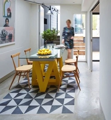 Can’t decide which type of floor you like most? Play with diverse patterns and finishes to create a multi-textured, multi-coloured floor space, as in this modernised mews in London’s Hackney.