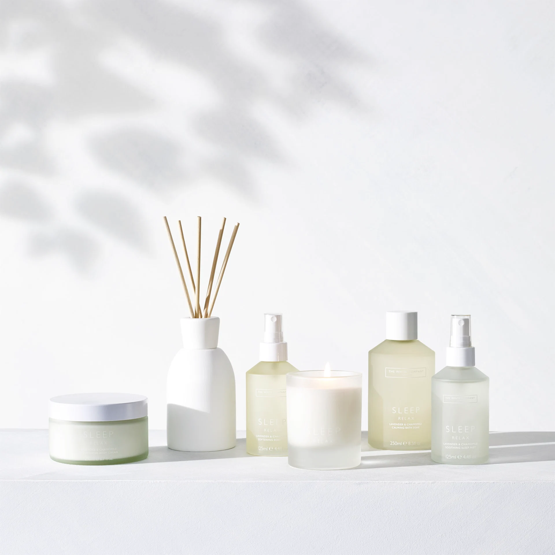 The White Company’s SLEEP kit, including a candle, diffuser, pillow spray, bath soak and body cream.