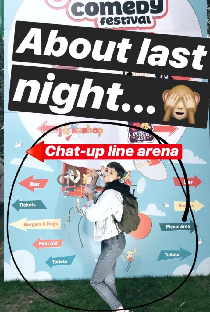 The challenge was carried out last weekend at the Vodafone Comedy Festival, and my friend Melanie reluctantly agreed to act as my wing woman, although she was more cringed by this entire idea than even I was.