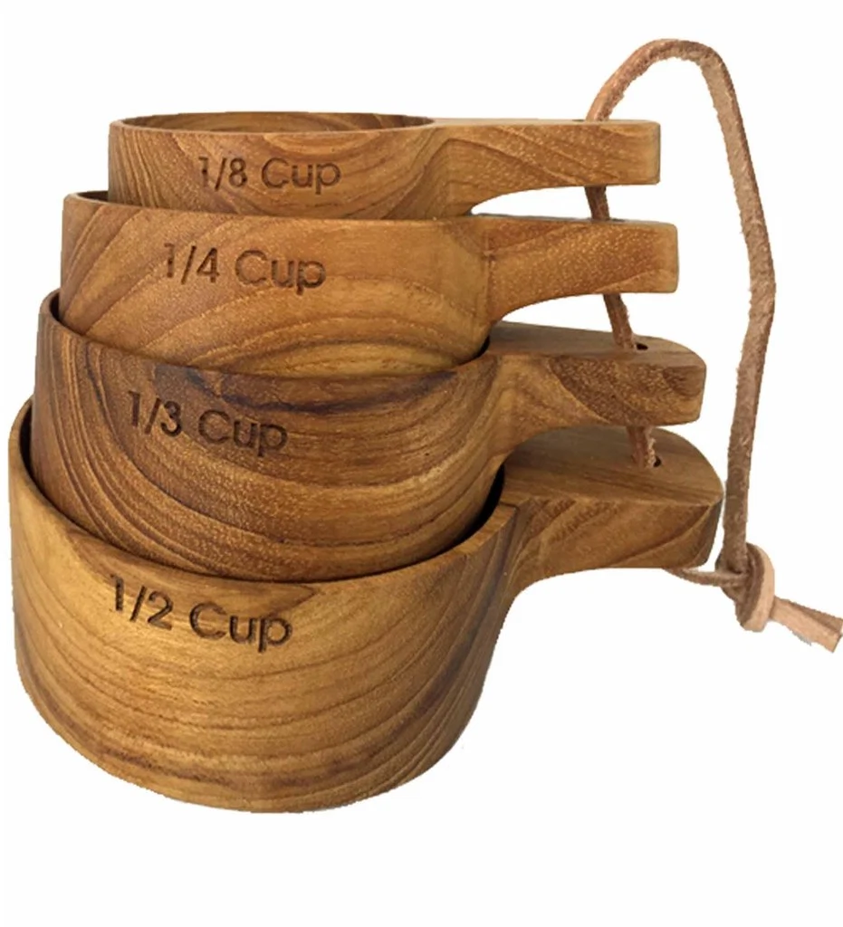 Teak wood measuring cups, €37.71 at rusticwallco.com