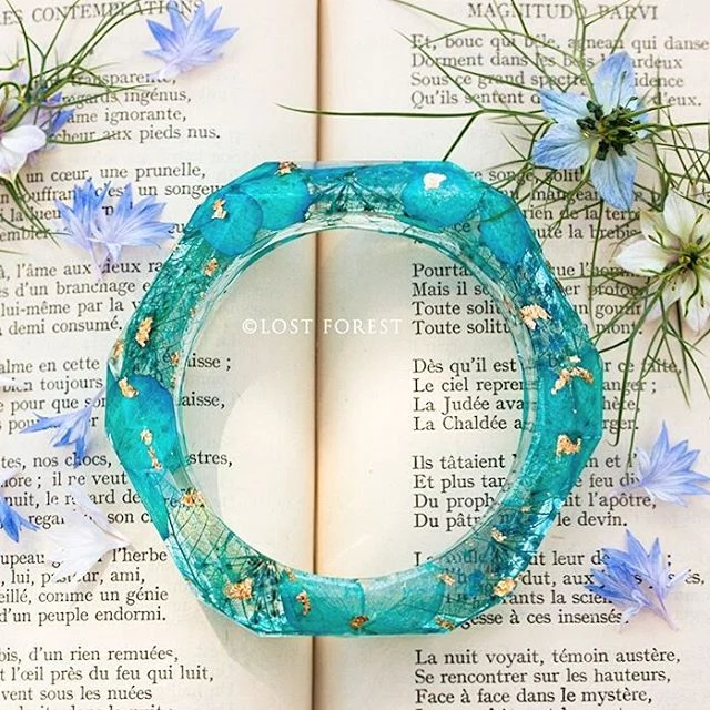 Gillian Corcoran of Eco Resin & Homewares creates enchantingly delicate wearables using organic and environmentally friendly materials from Ireland. A self-confessed designer, maker, flower preserver, photographer and daydreamer, Gillian skilfully uses a combination of broken metallic leaf with real flowers, feathers, moss and shells that she has personally collected to transform into wearable art. Follow her at @gilliancorcoran