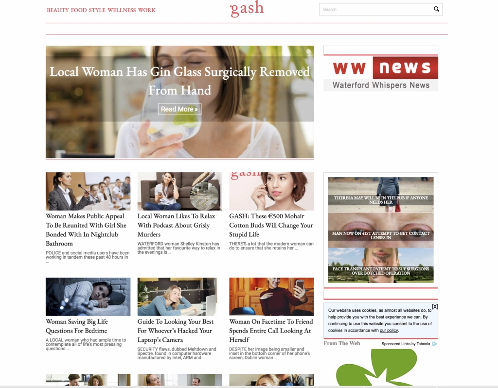 Brought to you by the hilariously satirical bunch at Waterford Whisperers News, GASH is their latest ‘female friendly’ project that promises women “who don’t need a female-focused site because, fuck, that’s kind of backwards when we think about it” a place to read the latest news and trending topics. Leave all inhibitions and insecurities at the door with this one and just dive right in. As you might expect from an Irish website, there is an abundance of swear words. In fact, the majority of headlines on the site include at least one curse word.