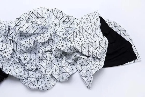 The first exhibitor to grab our attention was Studio Mikabarr. Known for their trademark graphic patterns and folded textiles, they have been showing cushions and throws in their latest collection – strongly influenced by the relationship between geometrics and organics, and using a unique folding technique that gives the textiles an innovative 3D structural element. It looks as if the geometric trend is here to stay but evolving with the introduction of new patterns, scale and origami techniques.