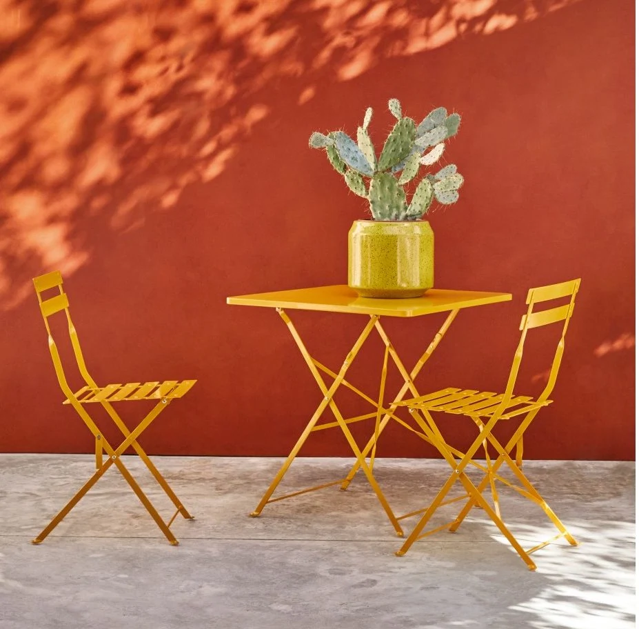 We may not always get the weather for it, but you can take every chance that we do to dine outside with a simple table and chair set. This design from Habitat comes in this summery pink shade, and can also be folded away during the colder months. Parc 2 Seat Pink Metal Folding Bistro Set, around €140, Habitat.