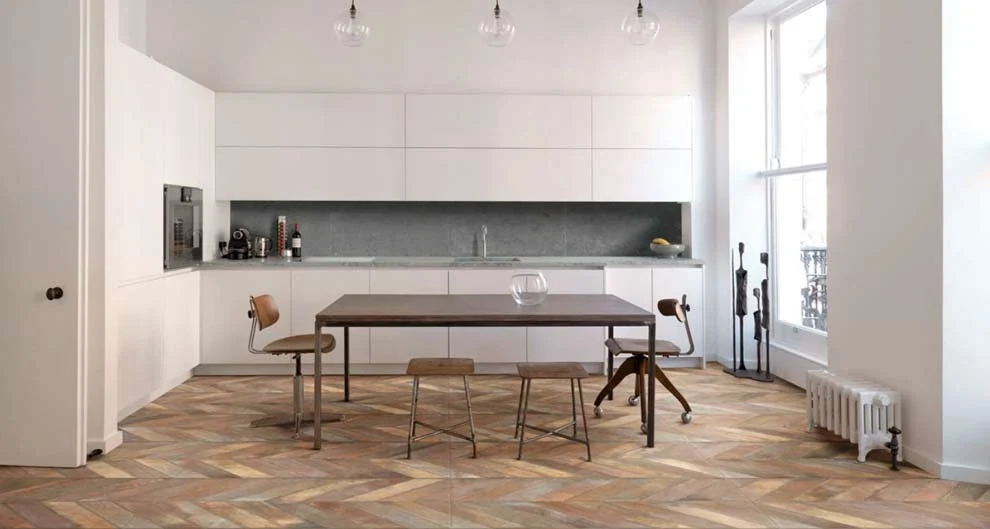 The Whole collection is a balanced synthesis of multiple elements in perfect harmony. Select, match and combine a collection of surfaces to create a unique space. Wood-effect tiles are easier to clean and maintain, ideal for a busy home with little feet or dogs.