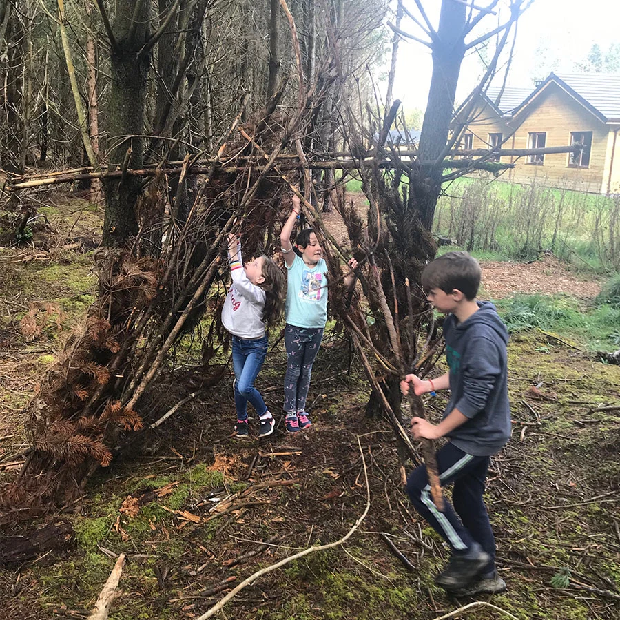 Katherine and Alanna build a den at the back of their lodge in Center Parcs. Photo: Supplied