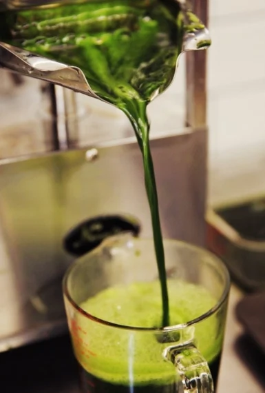 Kev – Our most popular juice is probably “Green Love” Which is combination of leafy greens, kale, chard, spinach, parsley, lettuce with cucumber, lemon and apple. We recently introduced an all vegetable dark green juice called “The Boss” which contains a gamut of leafy greens and wild nettles, and we’ve been blown away by its popularity.
