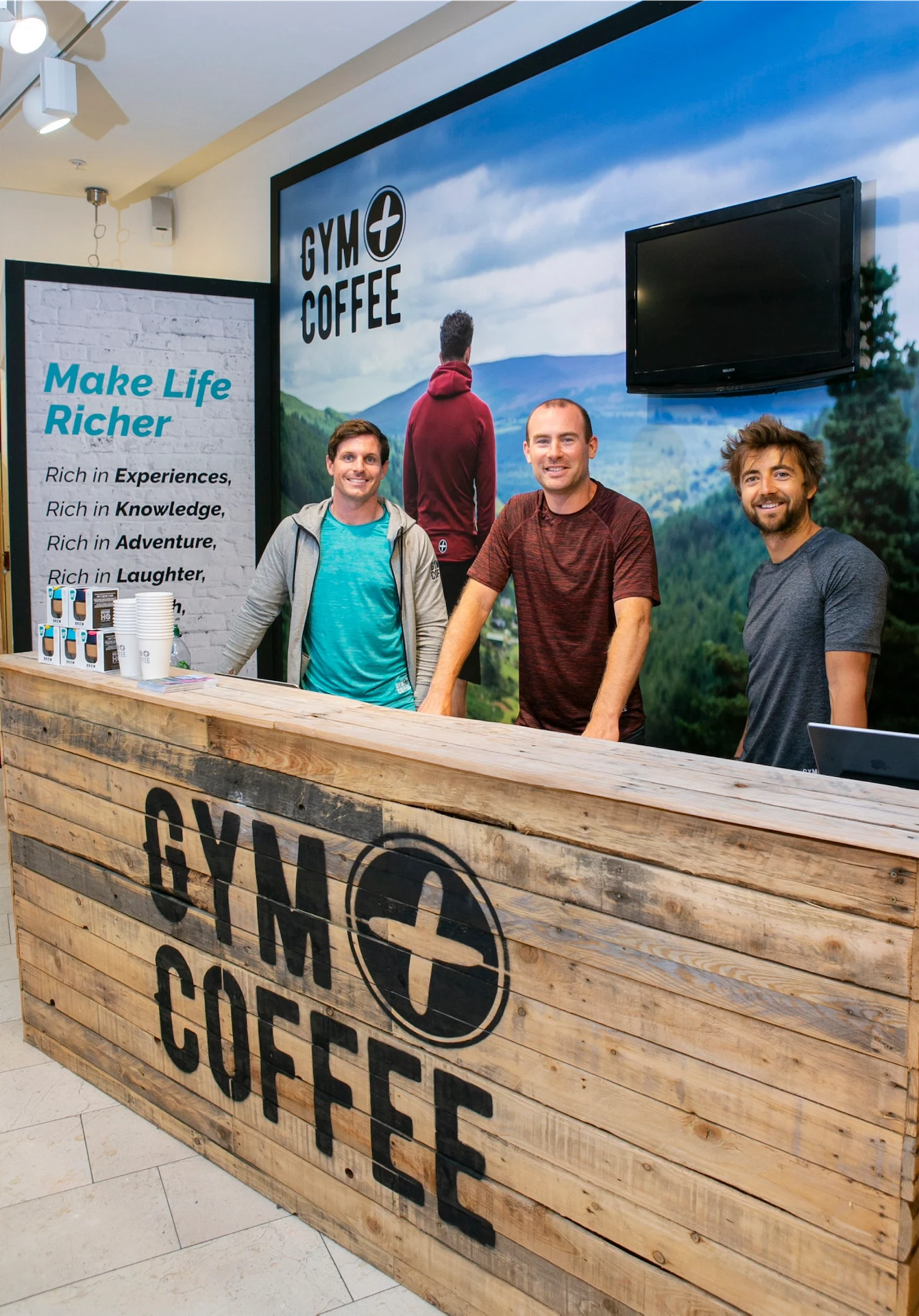 All three men were working full-time in steady jobs in tech and marketing. It wasn’t until Gym+Coffee was up and running a year that they gave up their day jobs to pursue it full-time.