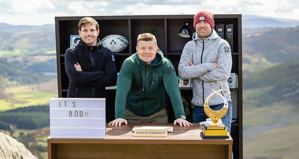 Niall Horgan and Diarmuid McSweeney with Brian O’Driscoll, who is Head of Community with Gym+Coffee. Photo: Gym+Coffee