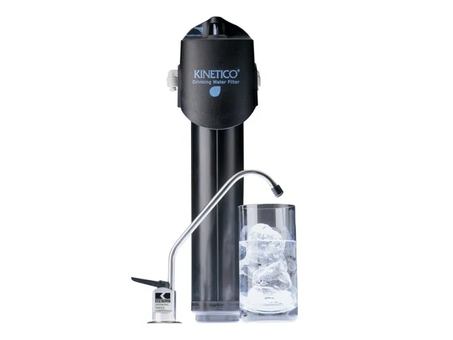A? Compact Kinetico Premier Water Softener fits discreetly under a kitchen sink.
