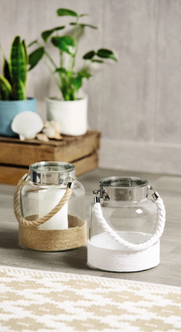 Sick of the standard candle holders? Try these glass and woven lanterns instead.