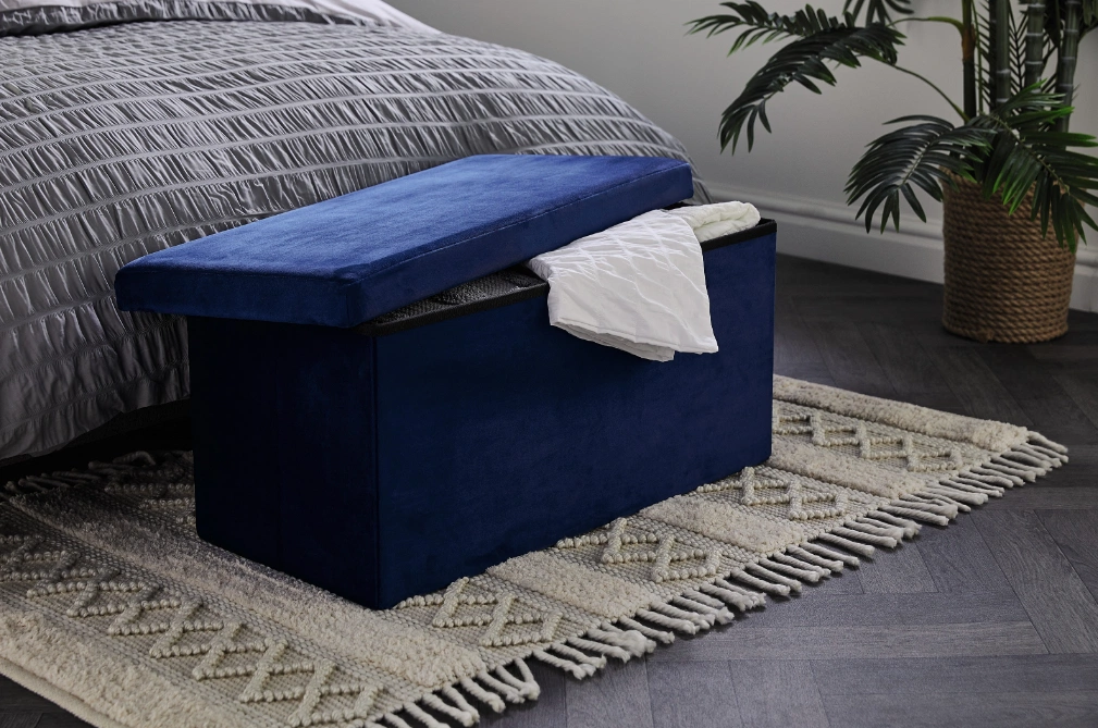 Stuck for space in your extra bedroom? Their Velvet Storage Ottomans are deal for bedding, towels and other storage needs. Available in grey, blue or black.