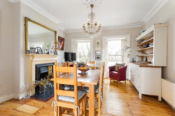 Set back off the road, this house is one of the oldest on the street, built around 1790. Spread across four floors, the entrance floor features a spacious dining room and kitchen with a range.
