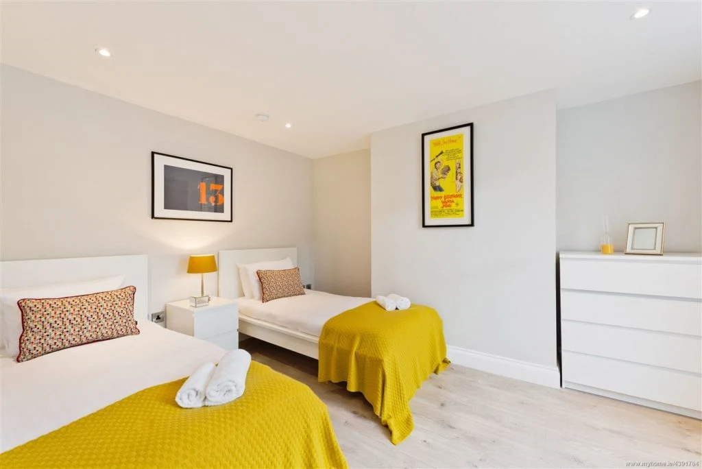 Also on this level is a stylish family bathroom. This comes with tiled flooring, a large walk-in glass shower cubicle, radiator and mirror above sink. There is also a twin bedroom on the ground floor, with a sash window and oak laminate flooring. This could easily be transformed into a second living room if needed.