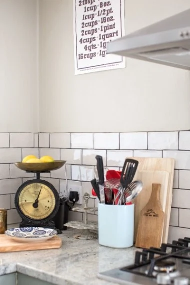 To give credit where it’s due, the wallpaper stripping wasn’t all Wendy’s doing. Wendy, her husband, musician James Byrne, and Duke the dog moved in two years ago to a house that was “liveable, no problem, but needed insulating, a new bathroom and kitchen, plus fresh plastering throughout.”