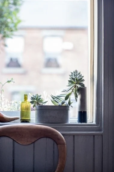 Things change quite regularly. “I move stuff around a lot. It drives James mad. He’s trying to watch football and I’m moving lamps here and there,? Wendy laughs. Still, he has a pretty good vantage point from the couple’s pre-loved Chesterfield from Fad? Antiques in Phibsborough. “He’s got a steady supply over there!” she grins. “I love our sofa.”