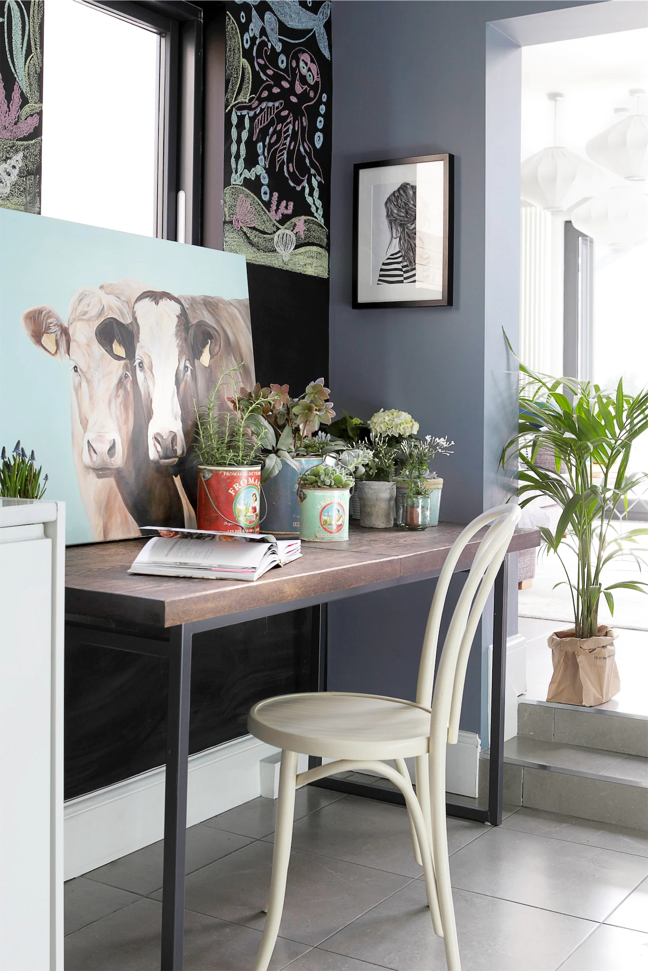 The cow painting is an original art commission by Debbie Chapman