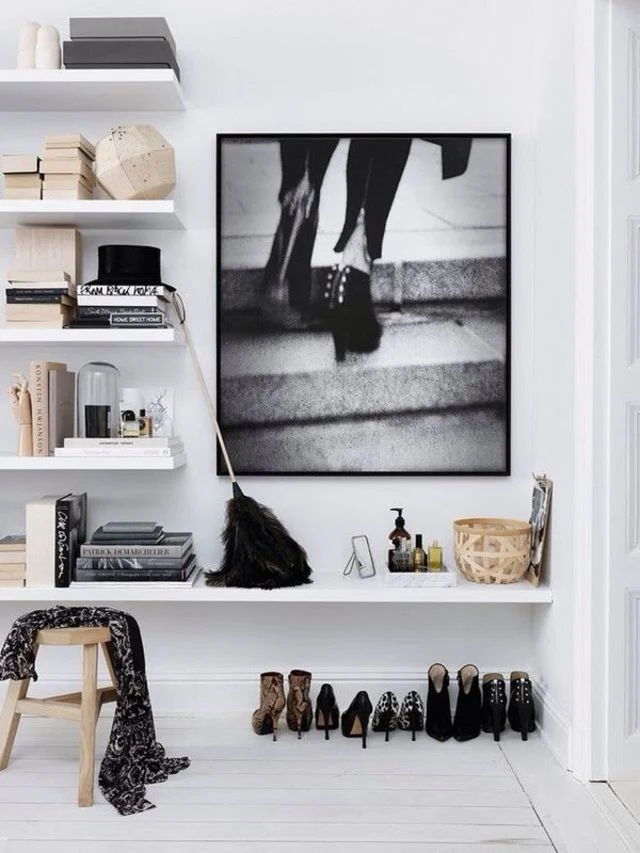 Think of the arrangement as a display rather than storage. Limit yourself to a small number of items and add boxes or baskets to conceal unsightly necessities.