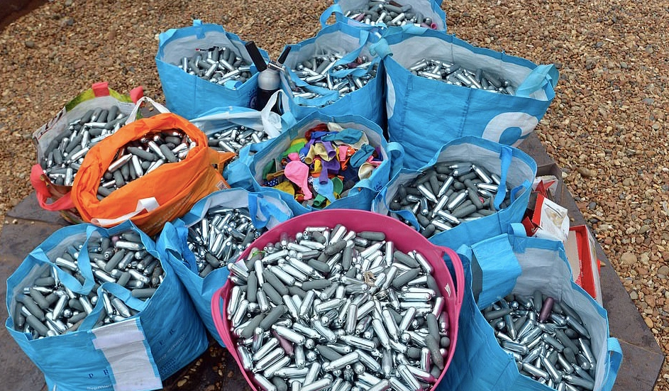 On just one Saturday night in a trendy part of London, over a thousand tiny empty silver canisters were confiscated from club-goers by police.