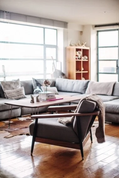 WHAT An open-plan party pad which the couple used to rent but now own. Jen and Dan turned the spacious former textile factory into a tactile and cosy home for two.