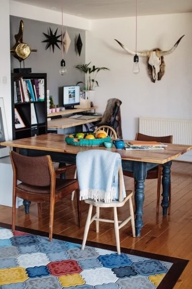 WHY LOVE IT Using DIY design pieces and an eclectic mix of art and a strong animal motif, this creative couple have made their mark on a once dauntingly large space.