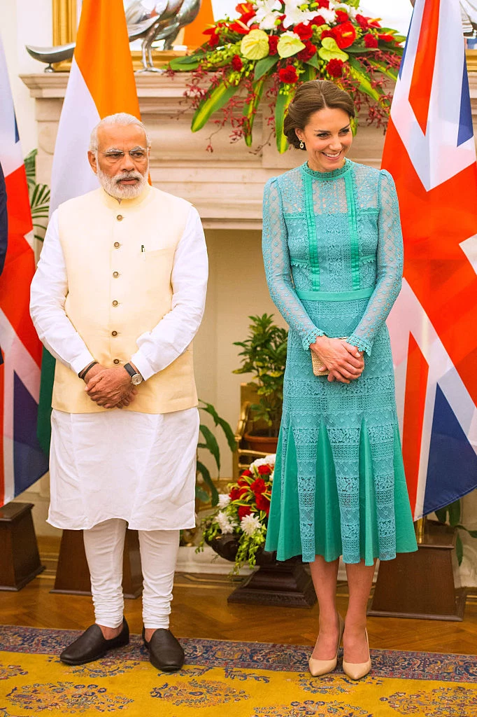 Trivia: Kate added ‘modesty panels? to this Temperly dress, for her meeting with India’s prime minister.