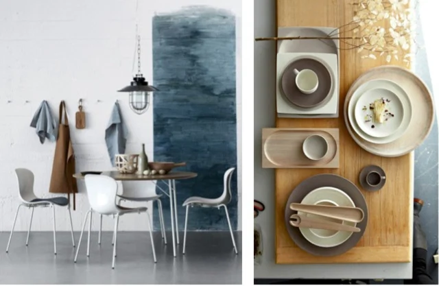 Hooks are a great way to show off your cooking/dining gems and are far easier to maintain on a daily basis than a bar for tea towels and aprons. Be sure not to overcrowd the wall and keep it to a minimum, like what’s pictured here. The?Japanese-style table set-up is a great example of how to create a well-thought-out setting with an aesthetic whole.