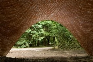 Rae Moore‘s Funicular Folly is now a permanent structure that can be found in the beautiful woods of?Ballinlough Castle,?where the annual?Body & Soul?takes place. The theme set out by the festival in which Rae followed was ?Second Skin: Transformations and New Beginnings?. The structure, using reinforced concrete, bricks and local Irish clay adopts a curved form and tent-like shape.