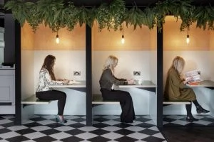 This interior, designed for Irish company, Iconic Office by?Kingston Lafferty Design?would definitely make you want to come to work everyday. There is nothing mundane about this office space. Not only is it vibrant with colour (and plenty of plants), but there’s also tons of quirky furniture and light fixtures that still serve the space’s functional purpose in this young, dynamic workplace.