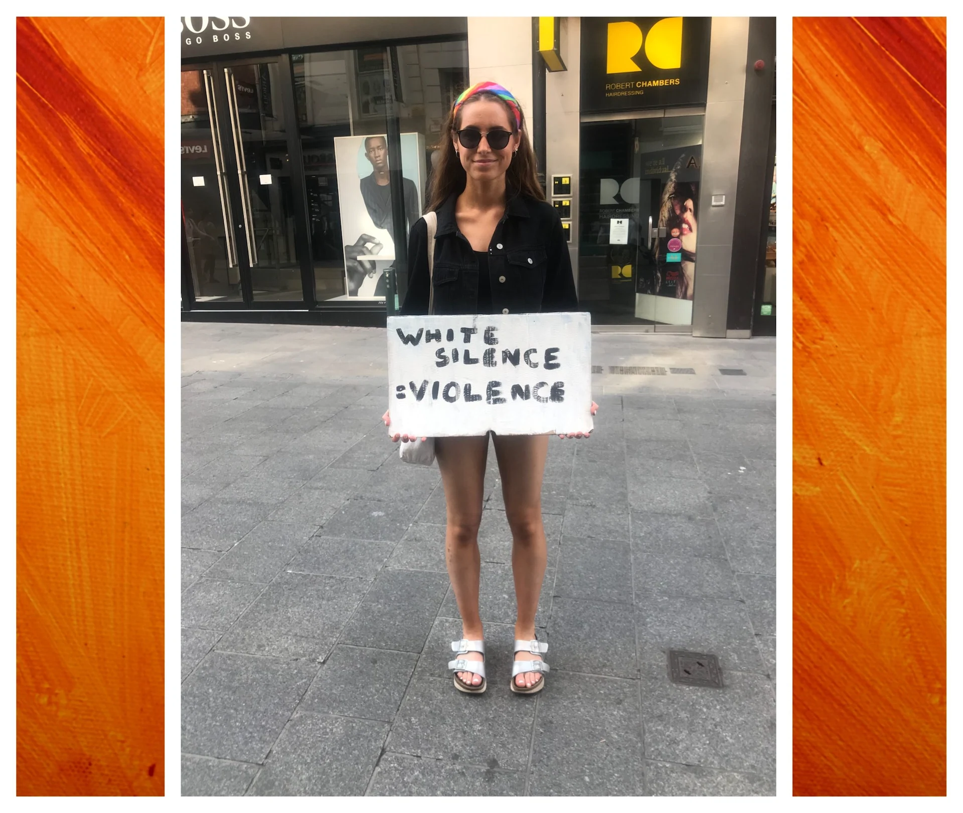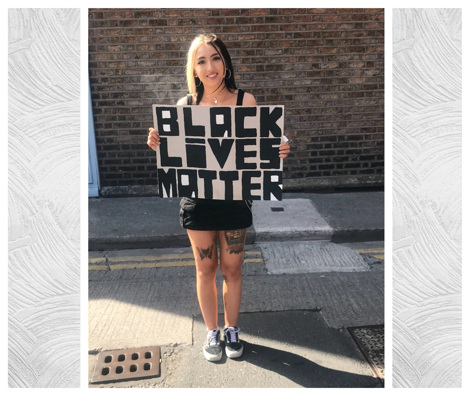 “Me and my friend [Aoife, below] got the bus in. We feel like it’s our place as white people to stand alongside the black community, especially after the horrible things that have been happening in the US. It’s good to see so many people who aren’t directly affected by this feeling so passionately about it.”