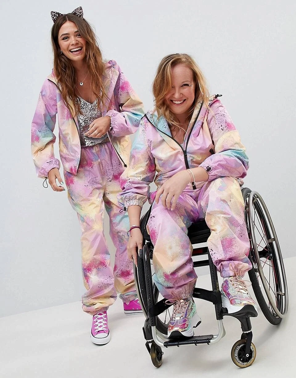 Created as a collaboration between Asos Design and BBC reporter Chloe Ball-Hopkins, this tie-dye, all-in-one waterproof jumpsuit can be worn by both wheelchair users and ye lot who walk on two legs, and with a waterproof zip which turns this one-piece into a two-piece, it’s adaptable fashion in every sense. The top part of the jumpsuit comes with a longer back because when wheelchair users wear clothes designed for non-disabled people, the rolling motion causes our tops to ride up…. and down, which is no bueno. The jumpsuit is lined with a soft jersey material, so there will be no uncomfortable chafing or catching, and the cuffs are also adjustable so you can change your sleeve length depending on what suits you. Surprisingly, a lot of jumpers and jackets can be difficult to roll up over the elbow so if you’re out and about on a rainy day in a wheelchair, your hands and arms really suffer with chafing. Soggy arms are never a good look. This colourful jumpsuit is screaming to be worn to a festival, and priced at €69.13, it’s a relatively affordable buy too.