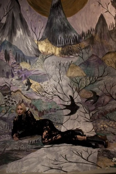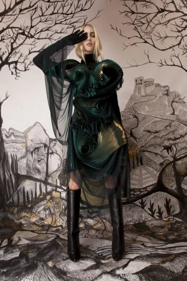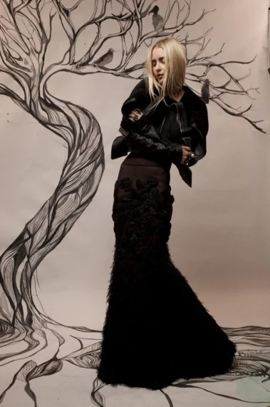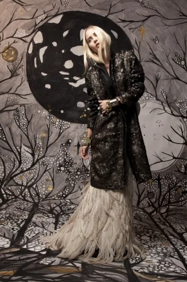 Illustrator Kitty Moss (aka Lyn Allen) comes armed with two first class degrees in fine art and fashion?and a pair of signature cat ears. She’s almost never in public without them (so keep an eye out) and they reflect in small measure her whimsical style, which she categorises as ‘spooky, playful, romantic, dark and sparkly?. We love her for many things but especially the backdrops she painstakingly created for our fashion editorial in the December 2012 issue of IMAGE.