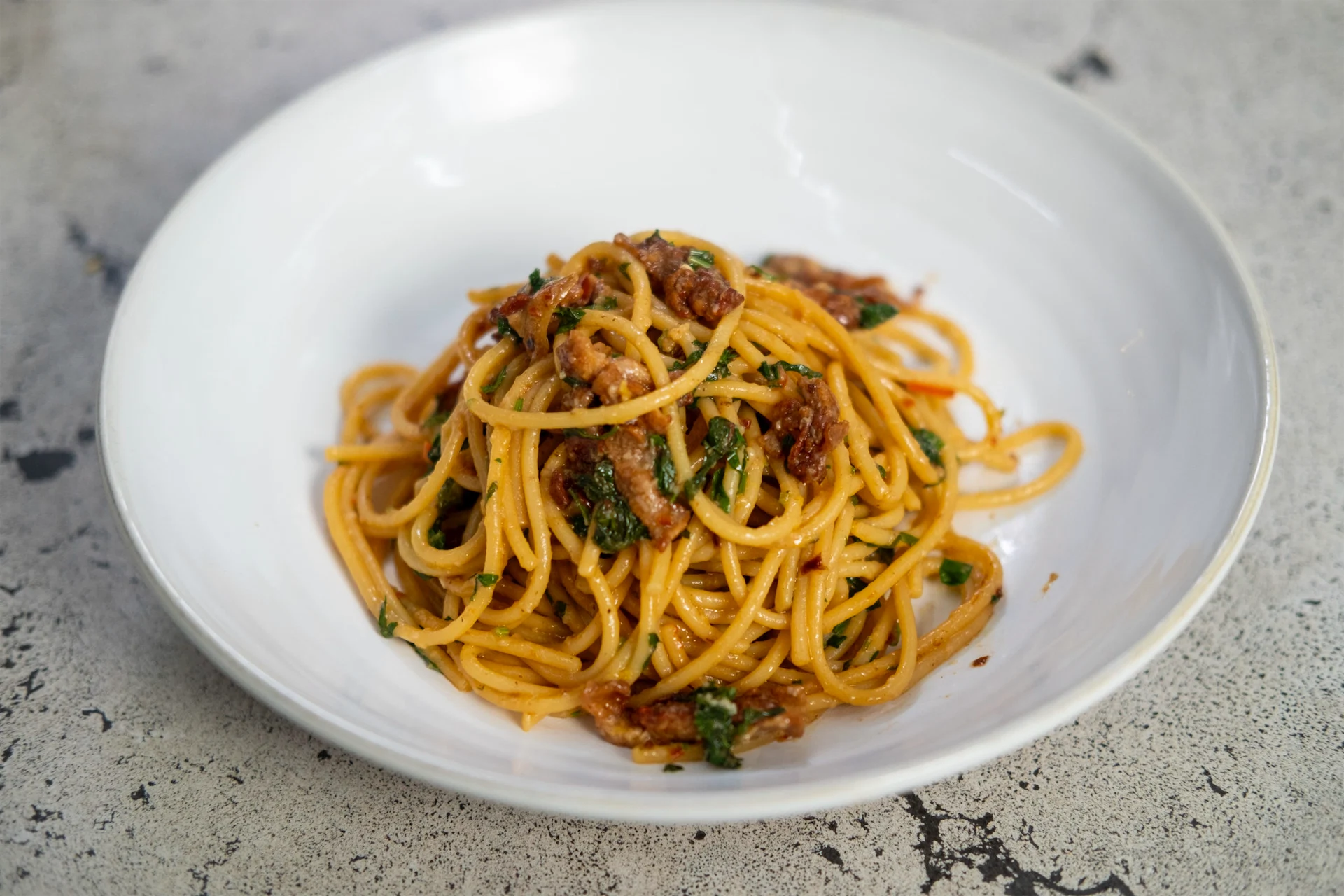 What’s your personal favourite quick-fix dinner? Spaghetti with garlic, chilli and parsley.