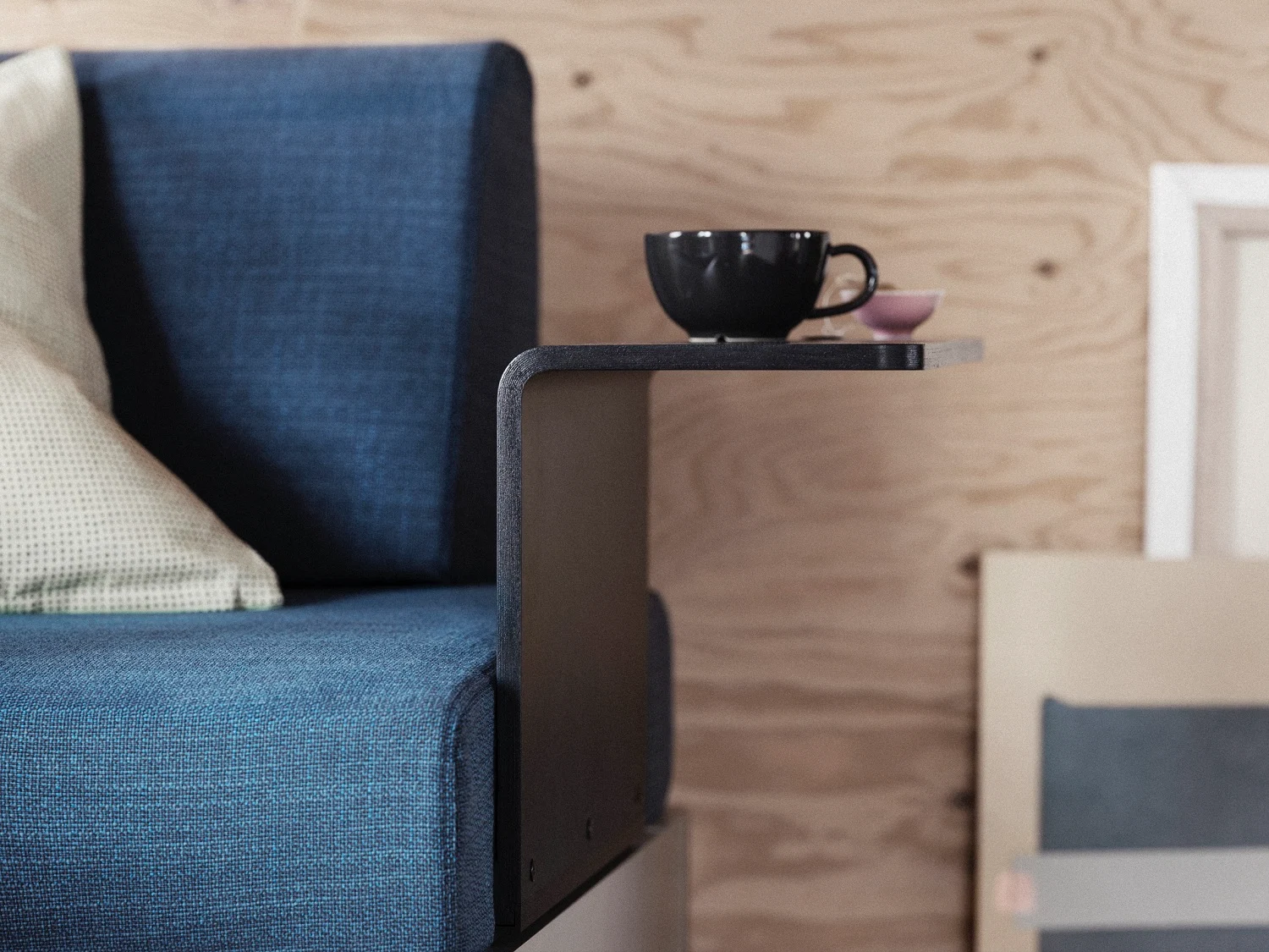 We love the idea of being able to clip-on a side table to rest a cup of coffee on, or a lamp for reading. You can also join up multiple platforms to create a larger seat that could equally be broken up into individual armchairs if needed.