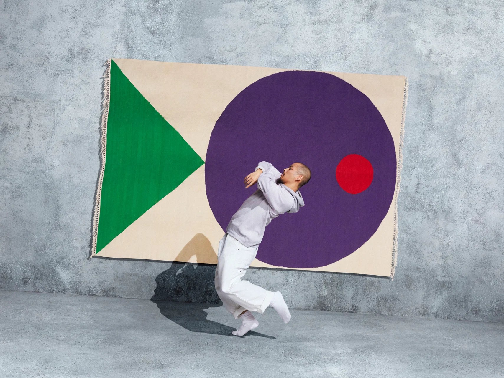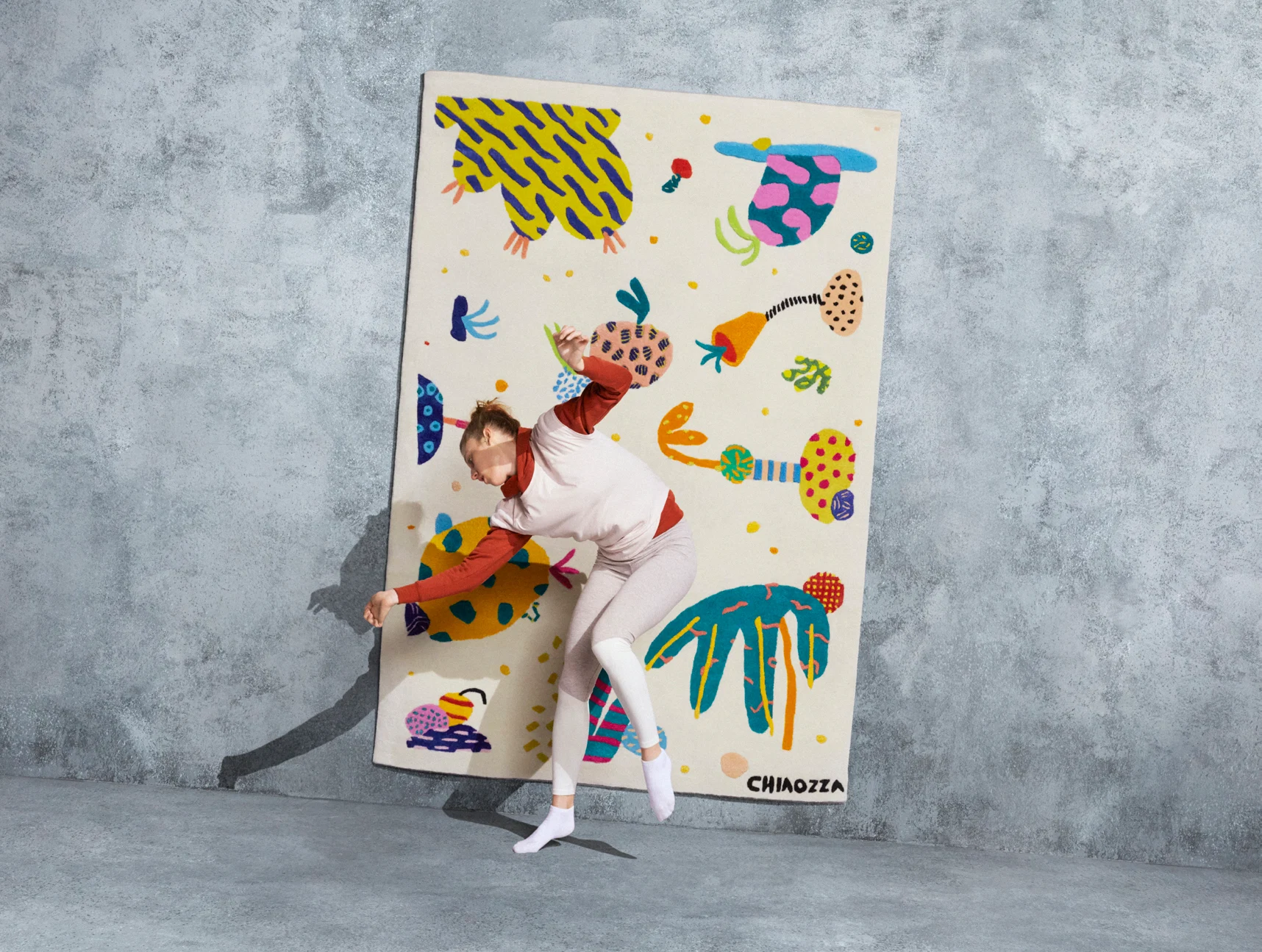Intended to create artworks in textile form, each rug is created by a different leading creative from around the world, including Japanese artist Misaki Kawai, French artist SupaKitch, American artistic duo CHIAOZZA and London designer Craig Green, as well as Virgil Abloh.