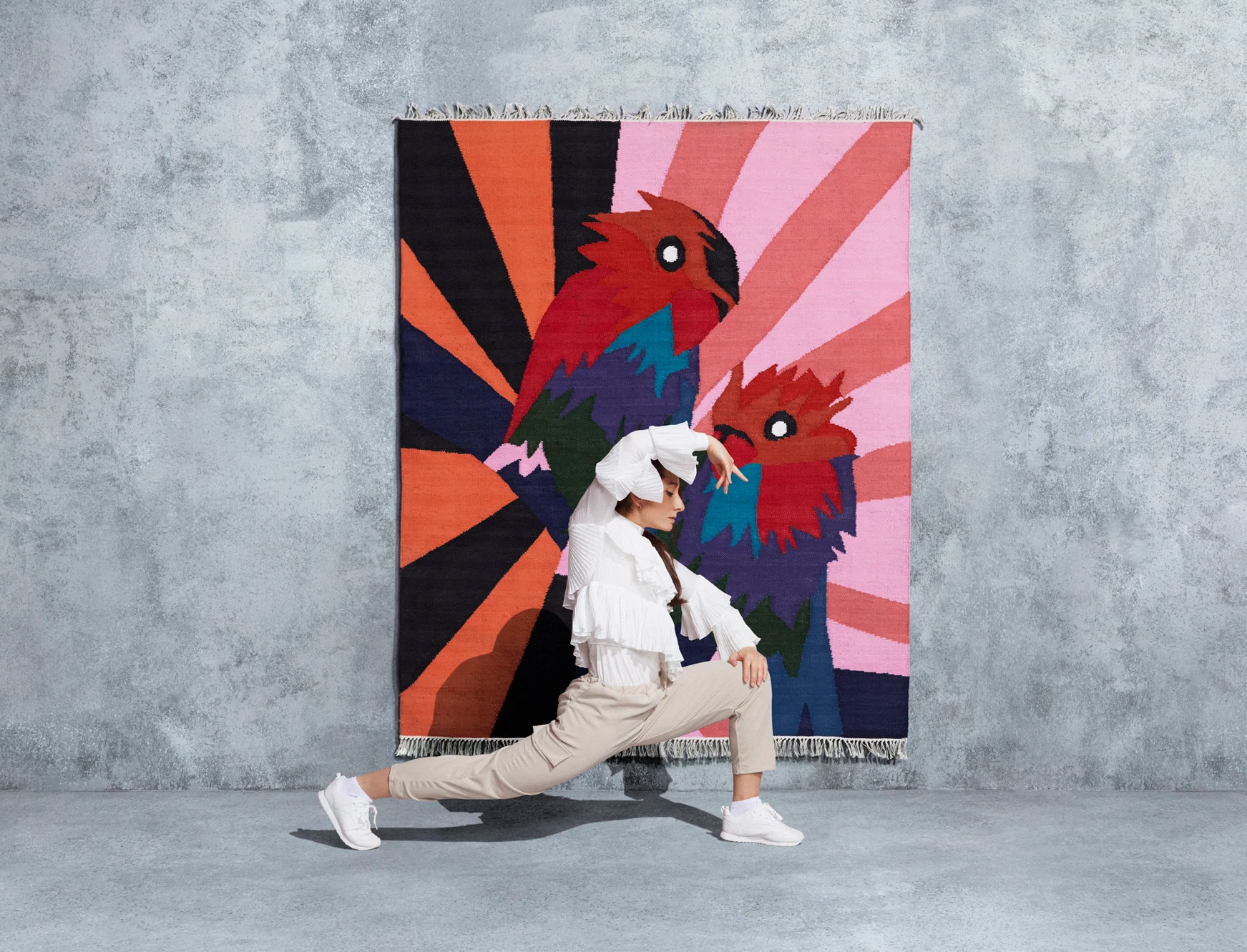 This bright and colourful creation of two birds of paradise was all about bringing the tropical into the domestic for Craig Green. He wanted to explore the idea of “escaping reality”, to create a “portal” that transports you somewhere else.