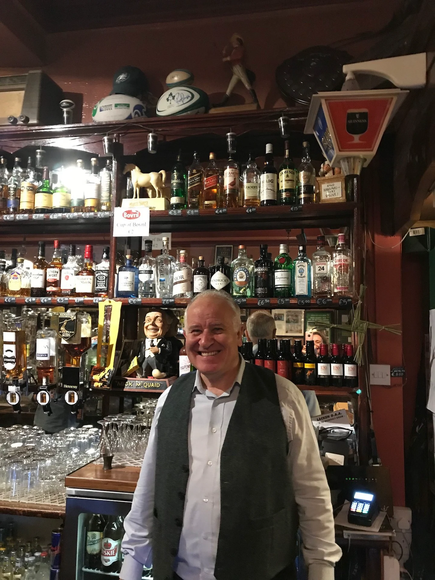 I think it says it all that a picture I posted on instagram of Pat – ebullient owner of Rouses bar in Ballina – got three comments from very different friends all singing his praises and sending their regards. Rouse’s had been on the go since 1946 but the premises itself has been a pub since 1865, making it one of the town’s oldest bars. The place is steeped in character and personality with shelves behind the bar lined with jars of Bovril next to the Gunpowder gin. Definitely a place to come a little early so you can nab one of the cosy snugs if you can. They host live trad music every Saturday night.