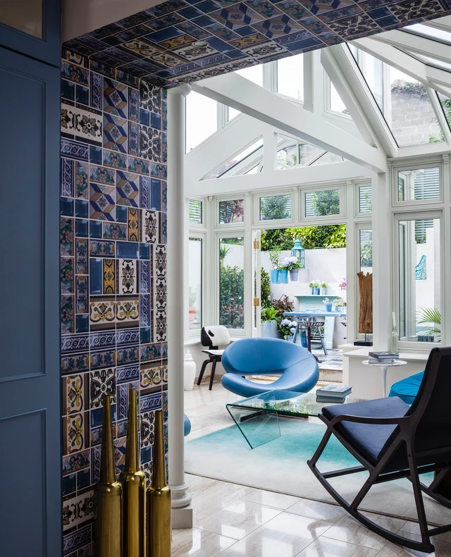 My biggest splurge was? Marcel Wanders Skygarden pendants in the library.?My two weaknesses in my job are tiles and lights ??they are my professional equivalent to shoes (and I have lots of shoes!). I love incorporating classic design light fittings into all of our work, as well as designing our own custom light fittings. Marcel Wanders is a serious inspiration of mine with his interiors and product designs. The pendants already are a contrast of styles with a seamless gloss dome on the outside and an intricately detailed plaster moulded interior. They juxtapose against the traditional panelled room beautifully. Having two defines the different zones in the room and adds drama and humour to the space.