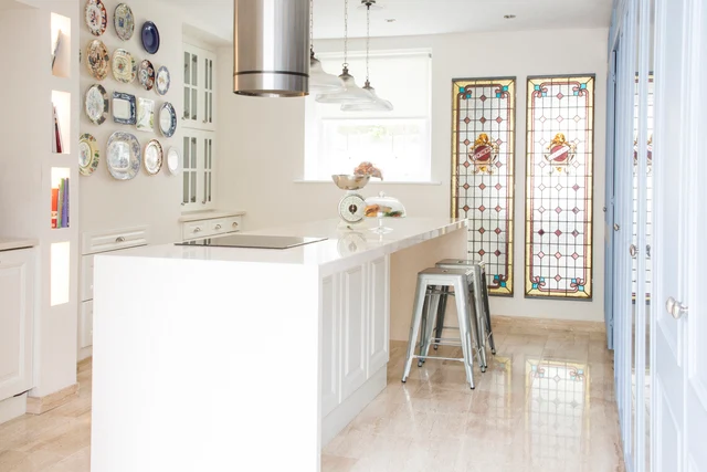 In a fire I would grab? The stained glass Parisian panels – although they wouldn’t be the easiest to grab!?I love when things have a story and past, which explains why I am so drawn to vintage and antique pieces. These stained glass panels were sourced in Paris and began their life as part of the perfume shop Lentheric. I love the detailing and the craft and skill involved in stained glass manufacture. The cracks add to their uniqueness and to their story. Imperfections are a sign of an interesting past.?To add interest, I added mirrored panels behind them which bounce the light and showcase their detail.