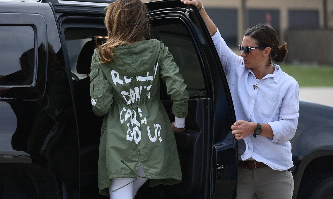 In the wake of the recent Trump administration’s immigration policy, which saw children being torn from their families and held in detention centres on their own, Trump decided she would wear a khaki Zara jacket, emblazoned with a slogan on the back, in graffiti-style writing: “I really don’t care, do u?” to visit one such centre.
