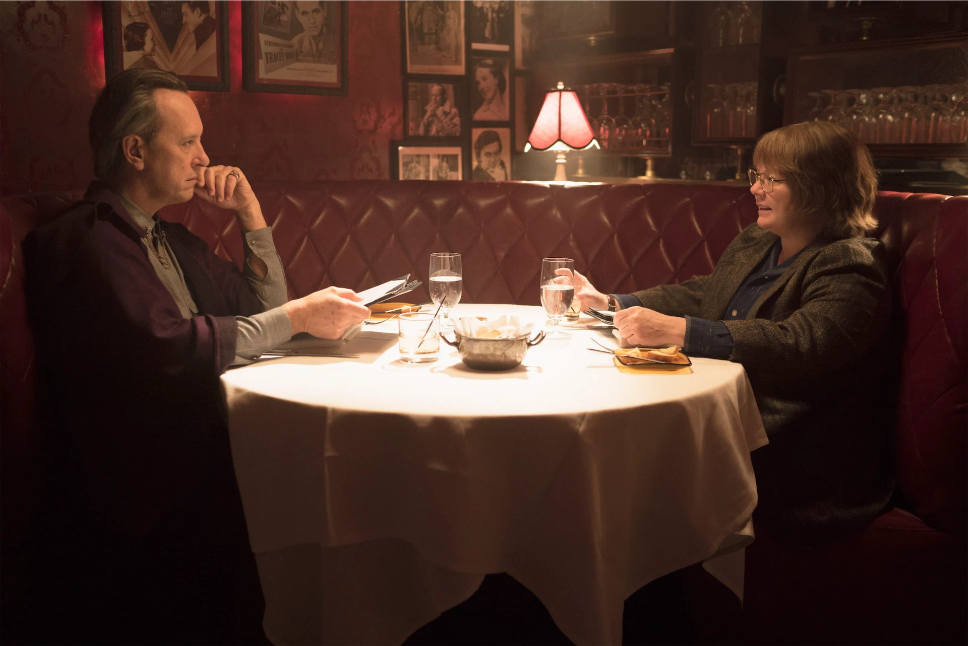 Let’s begin with the plot. If you’ve yet to hear the full story behind this Marielle Heller-directed biopic (yes, it’s based on a true story), here’s the gist: McCarthy stars as biographer Lee Israel, who in the 1970s and ’80s made her living profiling the likes of Estée Lauder and Katharine Hepburn. In the early 1990s, however, Israel found herself in dire need of finances and without work to obtain them, her difficult attitude having a lot to do with the fact that no one would hire her, or keep her in their employ if they did, and her publishers would not offer advances for the books she proposed to write. Her agent, played rather magnificently in this film by Jane Curtin, suggests Lee find another way to make a living. While researching for her biography on Fanny Brice, she stumbles upon letters written by Brice hidden within a library book. She pilfers them and embellishes one with her typewriter and sells it to a New York City bookshop. Once she felt the excitement of using her wit and writing talent to earn her a few bob and pay her overdue rent, she was hooked. Around the same time, she meets Jack Hock, performed brilliantly but the oh-so-wonderful Richard E Grant. They become fast friends, their love of drink and unconventional lifestyles bonding them immediately. Jack helps Lee sell her works of forgery once word started getting around that her letters were potential phonies. Israel sold more than 400 forged letters, so it was only a matter of time before her crimes would catch up with her, and the FBI was on her tail.