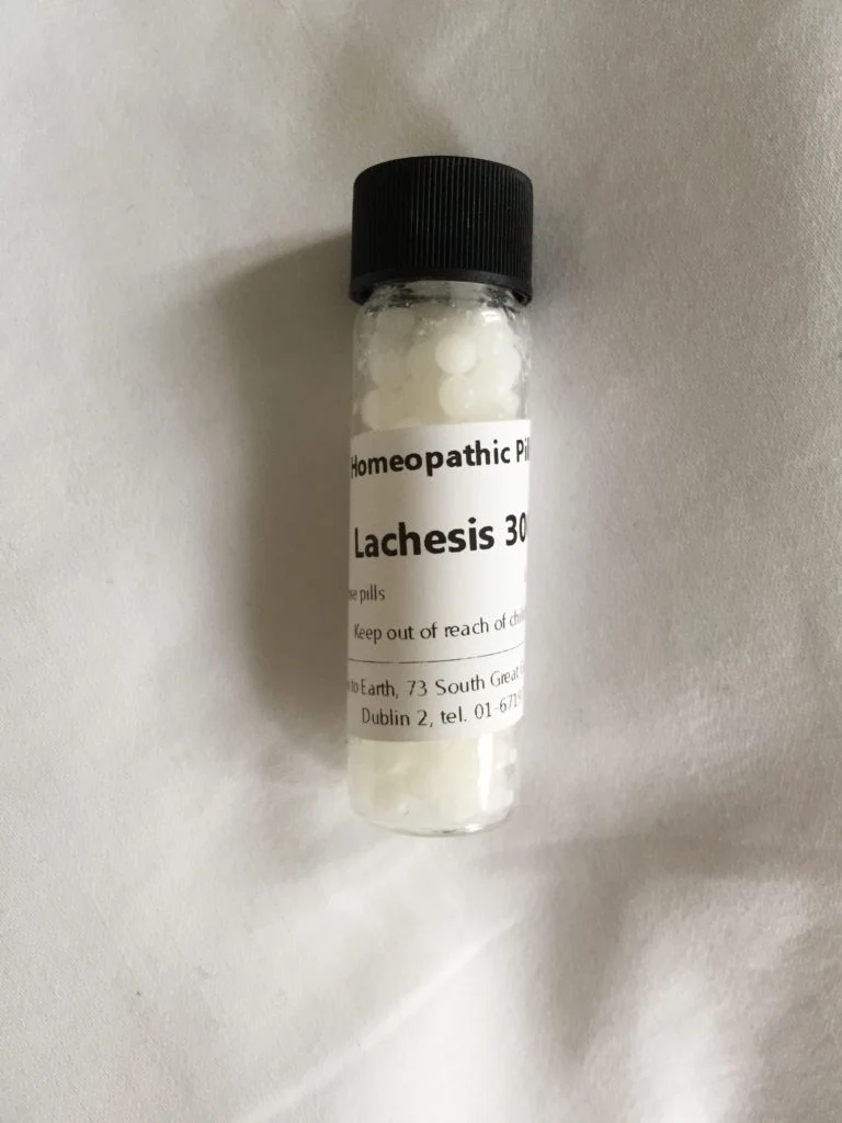 “… Lachesis” says the woman with the black curly hair behind the medicine counter in Down To Earth on George’s Street. She says it like I’ve asked her for a packet of Tayto. But then she says “I’ll make it up.” And that’s the giveaway.