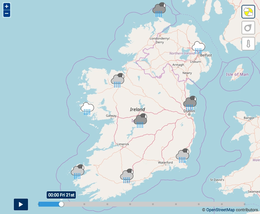 A status yellow rainfall warning is currently in place for counties Carlow, Kilkenny, Wexford, Wicklow, Cork, Tipperary and Waterford until 9 pm tonight. Forecasters say rain will be persistent and heavy at times, especially in the afternoon, with a risk of spot flooding. Totals of 25 to 40mm of rainfall are expected, with highest values likely near the coast.