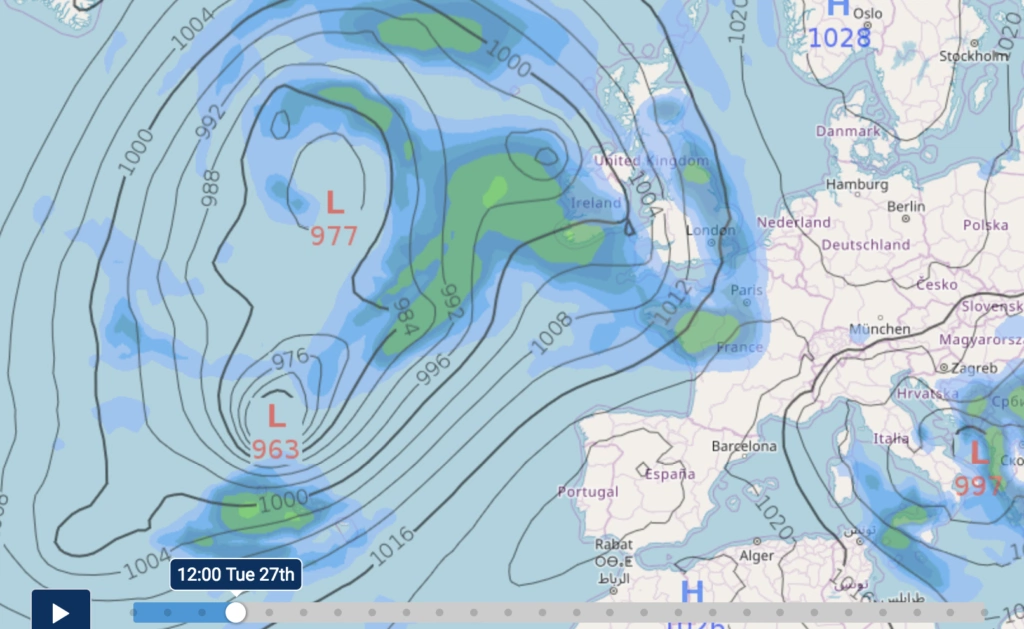 So-named by the Portuguese weather service, Storm Diana will bring strong winds and heavy rain to northwestern parts of the Azores on Tuesday. The storm will then merge with another area of low pressure on Wednesday, bringing wet conditions to Ireland and the UK. It’s important to note it will have lost its storm status by the time it reaches here.