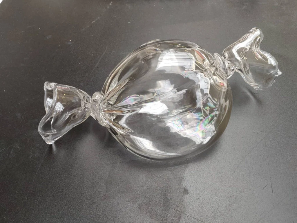 The first stop on the tour is the glass-blowing studio, where delicate creations by the 2019 graduates float around the room with a life of their own. Student Stuart Walsh debuted his collection ‘Boiled’, which, with oversized, graphic depictions of boiled sweets and prescription pills side by side, shine a light on the growing opioid epidemic. “The entire piece is looking at the opioid epidemic going on in America, that is transpiring onto our side of the Atlantic as well. I think it really rings true for a lot of people I’ve talked to, that are concerned with what they see as the pharmaceutical industry overprescribing the popular medications”, Stuart explained. “I want to look at why people are popping pills as much as they’re eating sweets, so that was the idea behind it.”