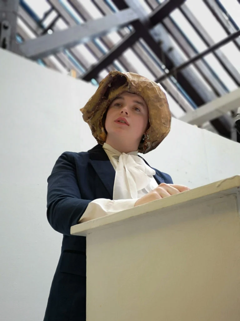 But Sculpture & Expanded Practice isn’t the only area that students can, and do, spread their wings into performance. The feeling of creative freedom is apparent throughout all departments, with students encouraged to encorporate any aspect of creativity that may enhance their work into their exhibitions. In the Paint department, which one might imagine as one of the most traditional methods of artistry, there lies a thoroughly modern exhibition by student Lee Hamill. ‘Solutions for the Border’ features a number of intricate portraits of controversial figure Margaret Thatcher, but the real magic lies in Lee’s accompanying speeches dressed as Thatcher herself. But even when Lee is away from the room, Thatcher’s presence is still ominously felt – a single chair in the corner with a handbag and pair of sensible heels ensures that her voice is still heard around the space.