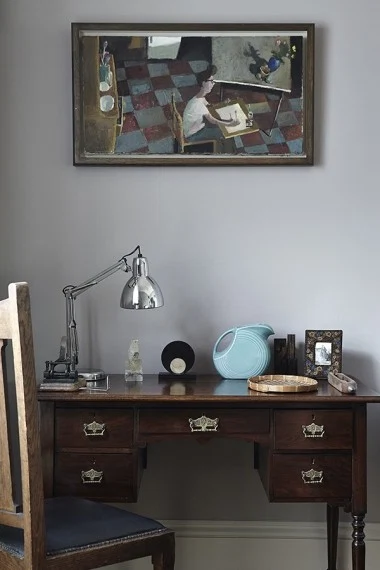 Artwork means a great deal to the couple. They used to buy each other paintings for Christmas – often from the Cadogan Gallery in London – and over the years have amassed a collection that includes pieces by Emma McClure, Charles Williams and Deborah Tarr. Now these pieces sit within a collection of rich, warm and subtle grey tones that make the most of the light in the renovated Victorian house.