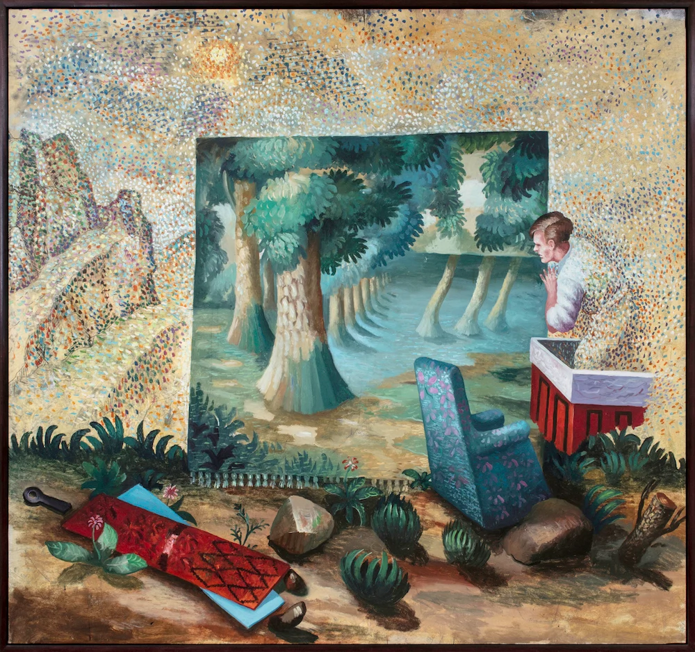 LONDON Utopias and dystopias collide in The Art of Steven Campbell, a retrospective of paintings by the late Scottish artist at London’s Marlborough Fine Art Gallery. Recurring, Tweed-clad characters appear in Campbell’s complex, allegorical landscapes, whose style echoes that of the Neue Sachlichkeit artists in 1920s Germany. His intricate and dramatic scenes, though, are distinctly his own. Runs September 13 to October 21. marlboroughlondon.com
