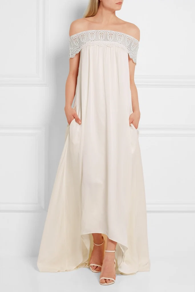 SELF-PORTRAIT Bardot guipure lace-trimmed satin gown, €660